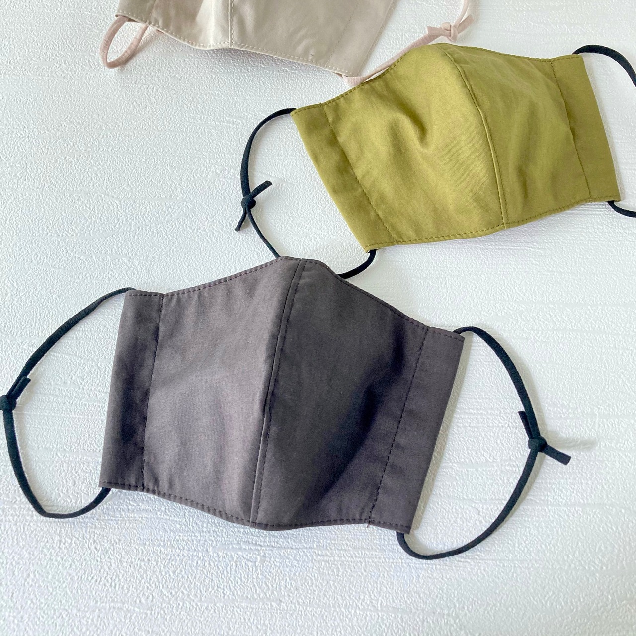 シンプルな無地のマスクは色で遊んで楽しめます。